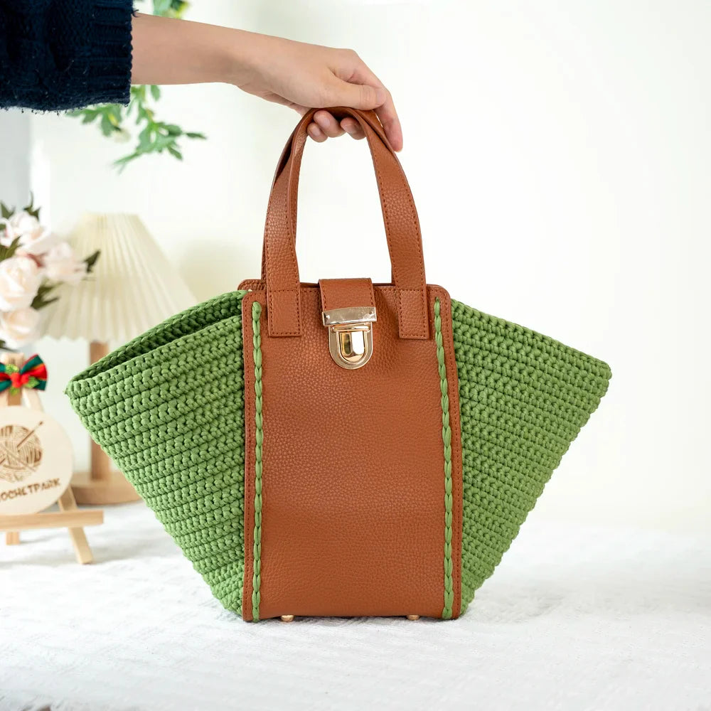 Introducing CrochetPark™ Hammock Tote Bag DIY Kit, the perfect blend of fashion and functionality. Crafted with durable leather and yarn, this bag is designed for everyday use. With delicate metal accessories, it's a stylish addition to any outfit. The dimensions of the finished large crochet bag are a height of 26 cm and a width of 43 cmWith a spacious capacity, it can hold all your essentials like a mobile phone, power bank, scarf and Gloves.